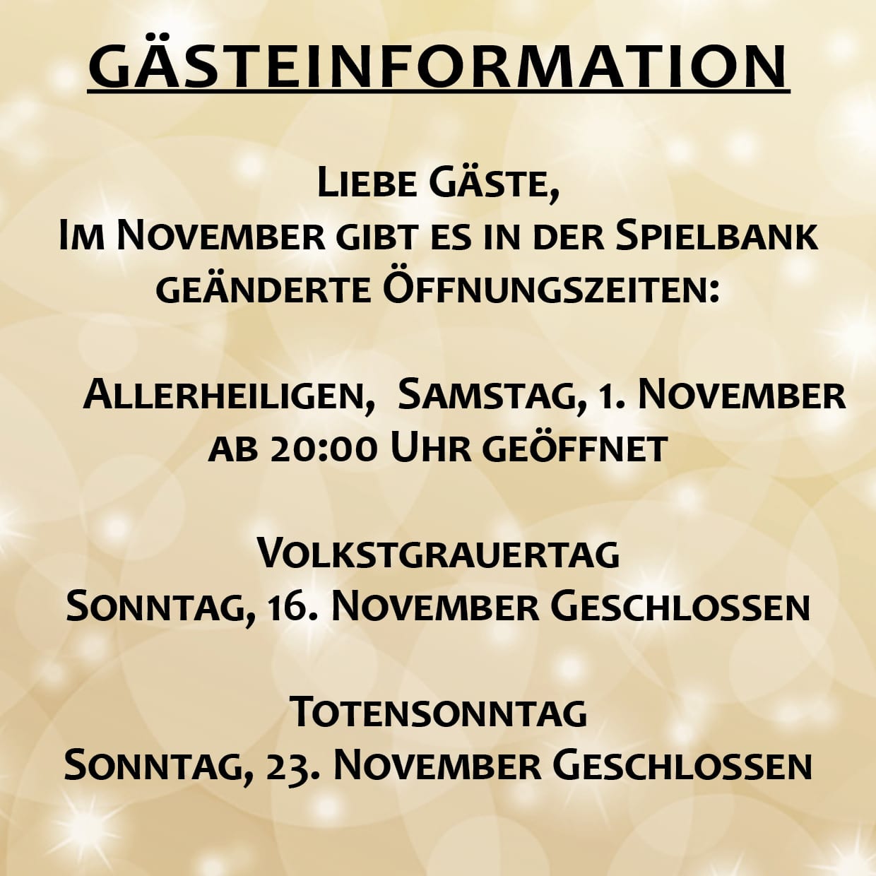 Bitte beachten Sie, dass aufgrund der gesetzlichen Bestimmungen vor Eintritt in die Spielsäle an unseren Rezeptionen ein in Deutschland gültiger Lichtbildausweis (z.B. Personalausweis oder Reisepass) vorzulegen ist. Das gesetzliche Mindestalter beträgt 18 Jahre.