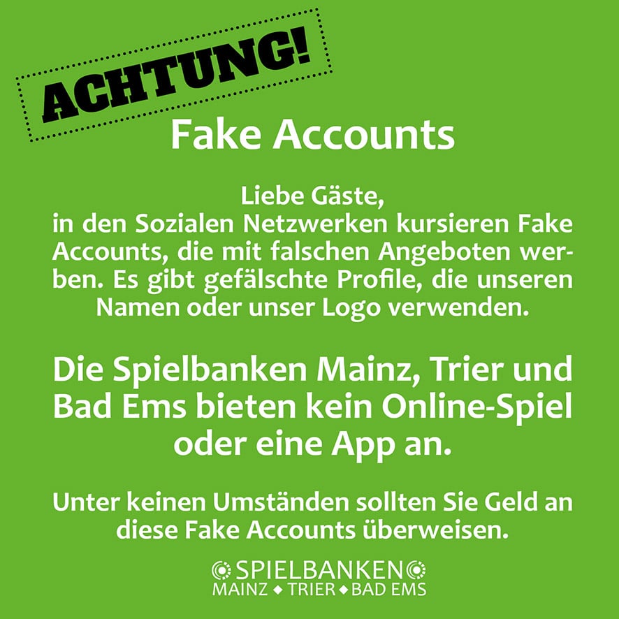 Die Spielbanken Mainz, Trier und Bad Ems sind sich dessen bewusst und sprechen sich ausdrücklich für einen verantwortungsvollen Umgang mit dem Spiel aus.